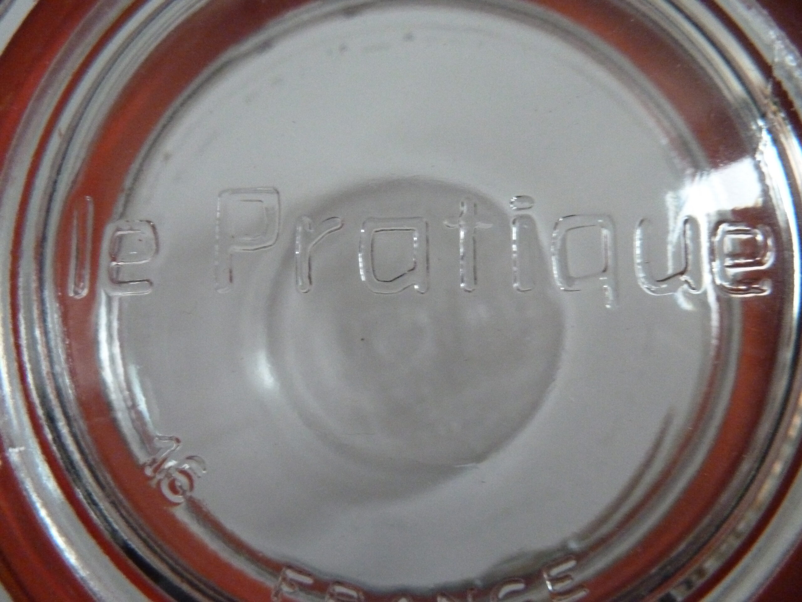 Dit is een tweedehands weckpot van het merk Le Pratique. Het rubber sluit nog goed aan en is niet uitgedroogd. De weckpot heeft een inhoud van 350 mililiter.